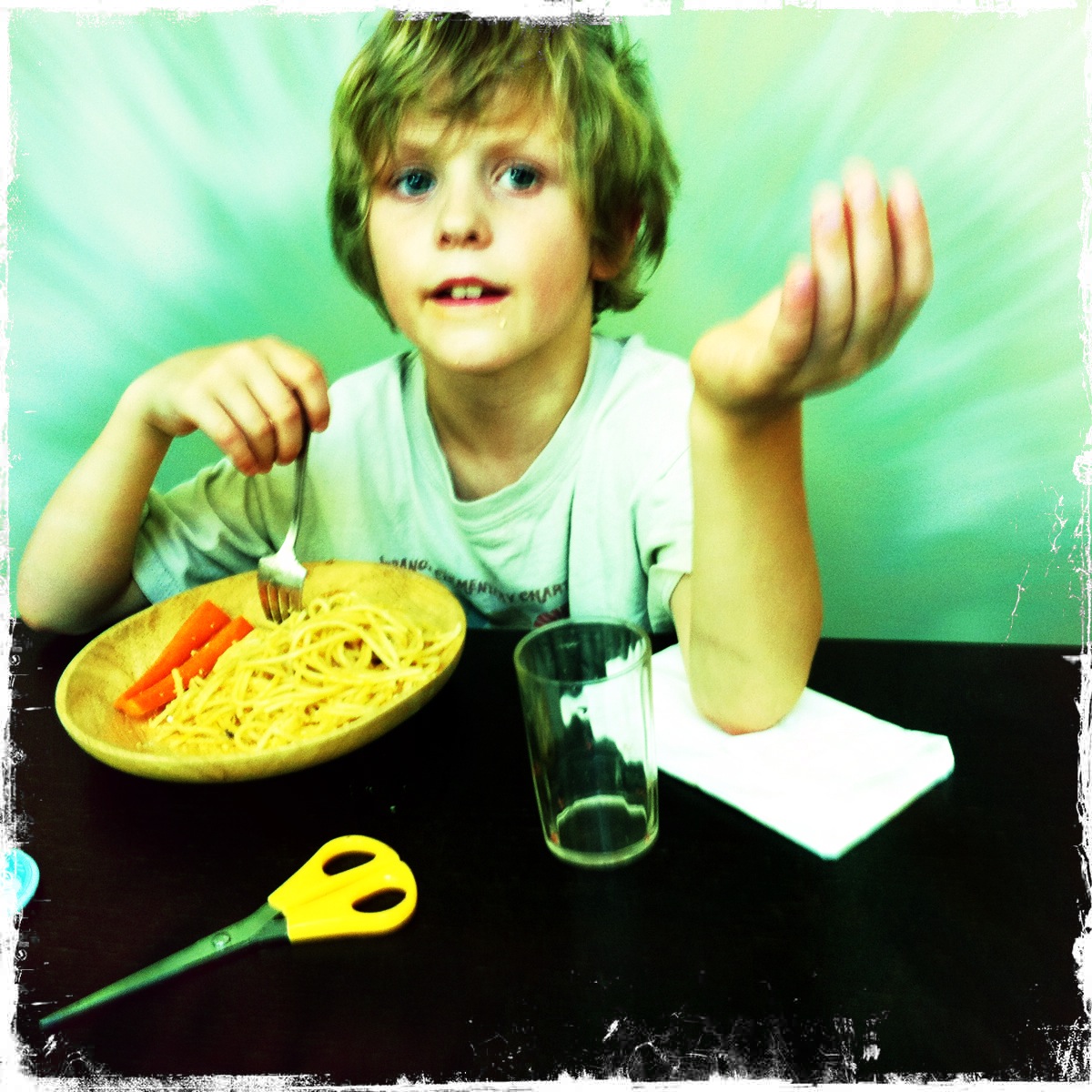 The other night, I made a sweet-and-sour Sicilian sardine spaghetti with tomato, raisins, pine nuts and pecorino. I’d found a nice little package of octopus on sale at the Japanese market, so I made up a dish of garlicky octopus antipasto — über-spicy, since I knew I was going to be the only one eating it. “Polpo diavolo,” I called it — “Devil’s octopus” in Italian. For the kids, I carefully extracted strands of the spaghetti with no raisins, sardines or pine nuts and covered them in a thick snowy blanket of parmesan. But even though the noodles were so disguised, residual dots of the offending ingredients were detected. And a battle ensued. (Inexplicably, these are the same kids that relish ripe French cheeses — the stinkier the better.) Once I served my son a coleslaw. “Dad, what are those little dots??” he asked suspiciously, pointing to the celery seeds. I couldn’t resist. “Those are little bugs.”