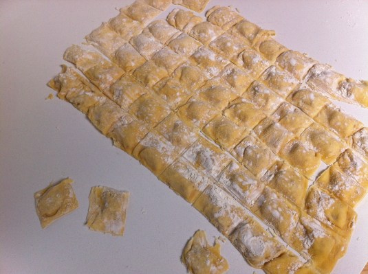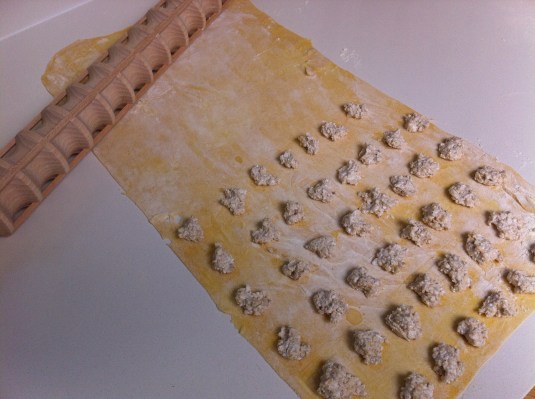 My friend and sometime Skinny Girls sidekick Greg gave me a ravioli rolling pin some time ago. And one afternoon, the baby sleeping and my work load light, I decided to try it out.