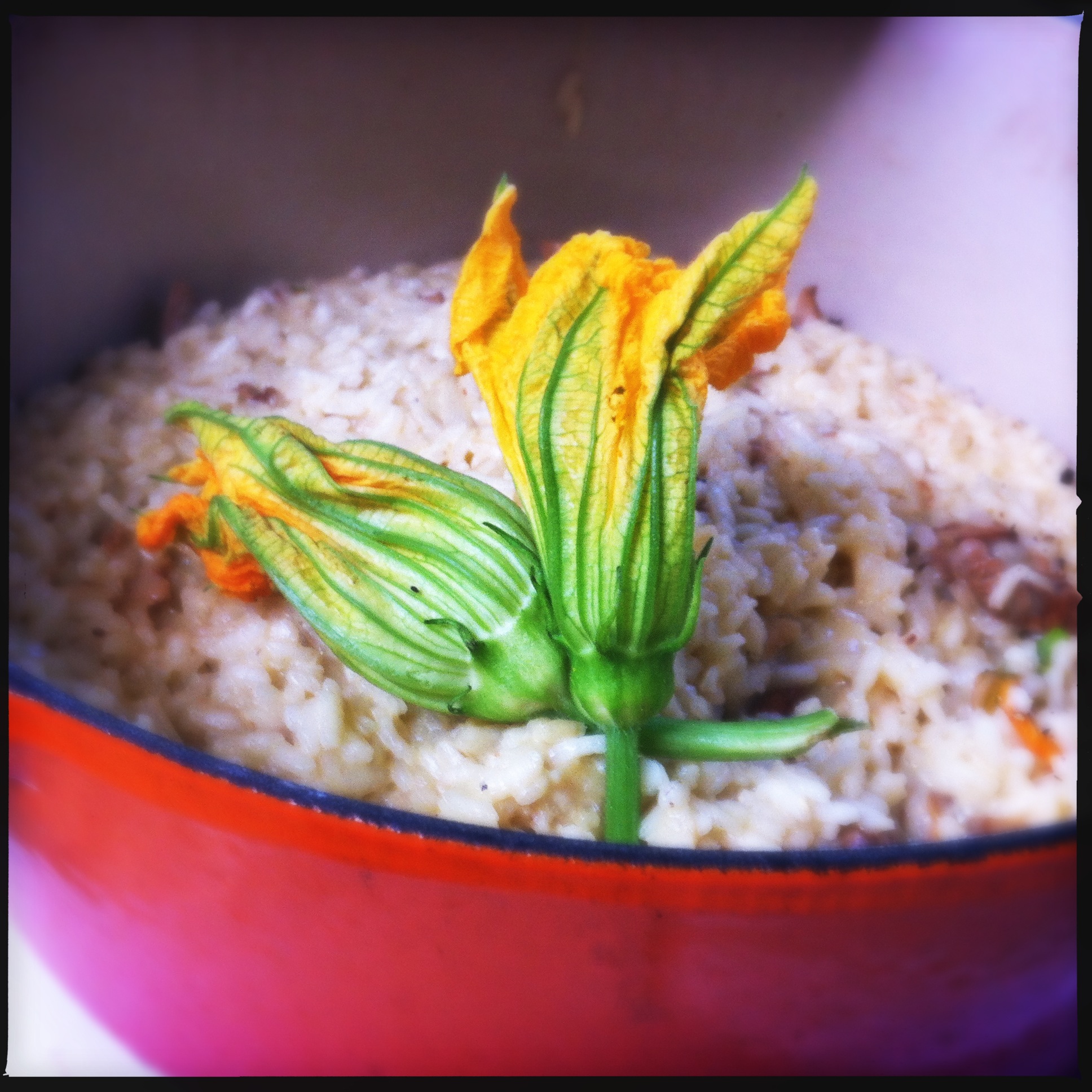 These days, we alternate Thanksgivings between my wife’s family and mine. This is her year, so we’ll load up the car and head north on the Ventura Freeway to her sister Laina’s farm in Oxnard, where we got married — just a short drive from that miniature golf course. I emailed Laina to find out what I could bring. She said to bring whatever I wanted, and I volunteered a wild mushroom squash-blossom risotto. I guess I’ve still got a little rebel left in me yet…
