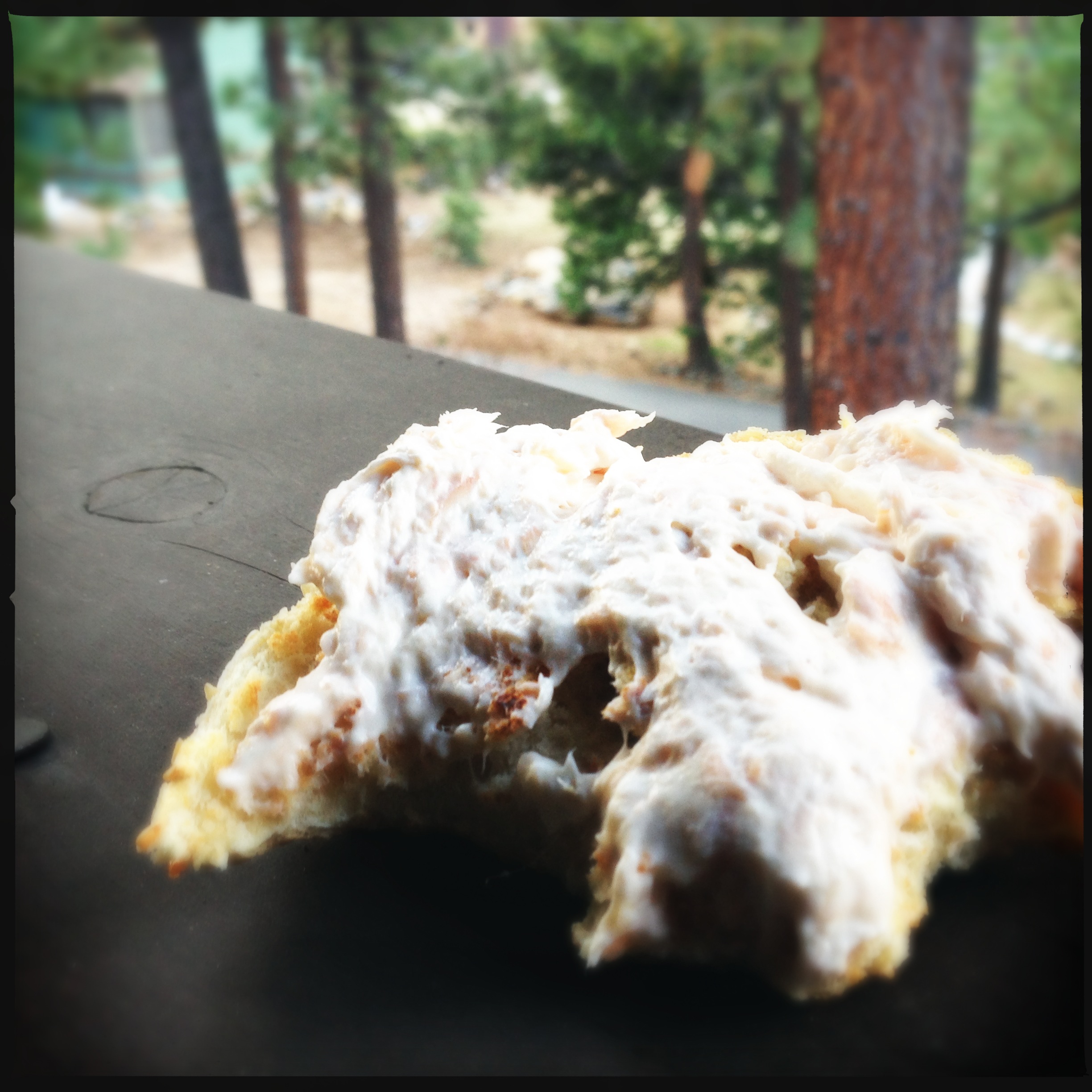In the morning, I cleaned the pale red meat from the bone, mixed it in with some salt and whipped cream cheese and voila! smoked trout shmear. We had a selection of bagels, onion, sesame seed and water, from which to choose. Fortunately, there’s still some in the fridge for tomorrow — I bet smoked trout shmear gives you a good base for that 8-hour drive home to L.A.