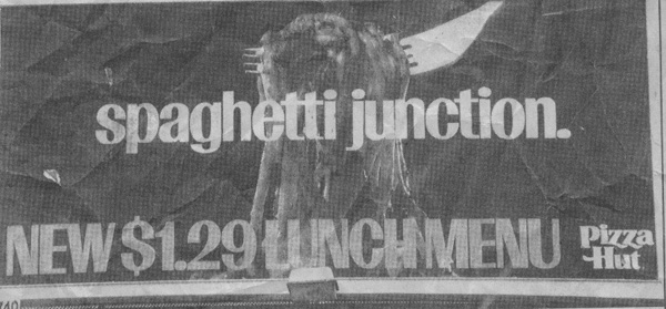 Jesus makes regular unannounced appearances in food as well. Less partial to tortillas, He is more likely to be found in a plate of spaghetti or a sandwich bun. The most famous Jesus-spaghetti sighting was on a Pizza Hut billboard on a remote stretch of highway in Georgia in 1991.