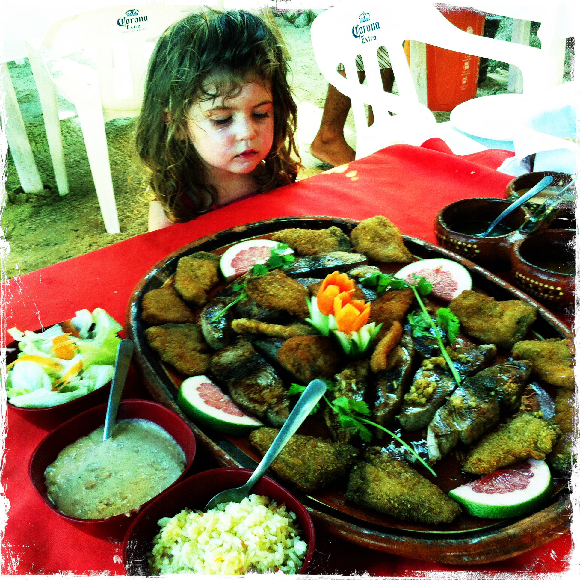 Ninety minutes may have passed, or maybe it was twice that. The platter of fish that arrived was indeed impressive — fried and grilled, pounds and pounds of yellowtail, surrounded by tortillas and beans and rice and a quartet of salsas. It was as fresh and bright as the turquoise sea lapping at our toes. We ate as much as we could and because we didn’t have the right change, ordered more beers.