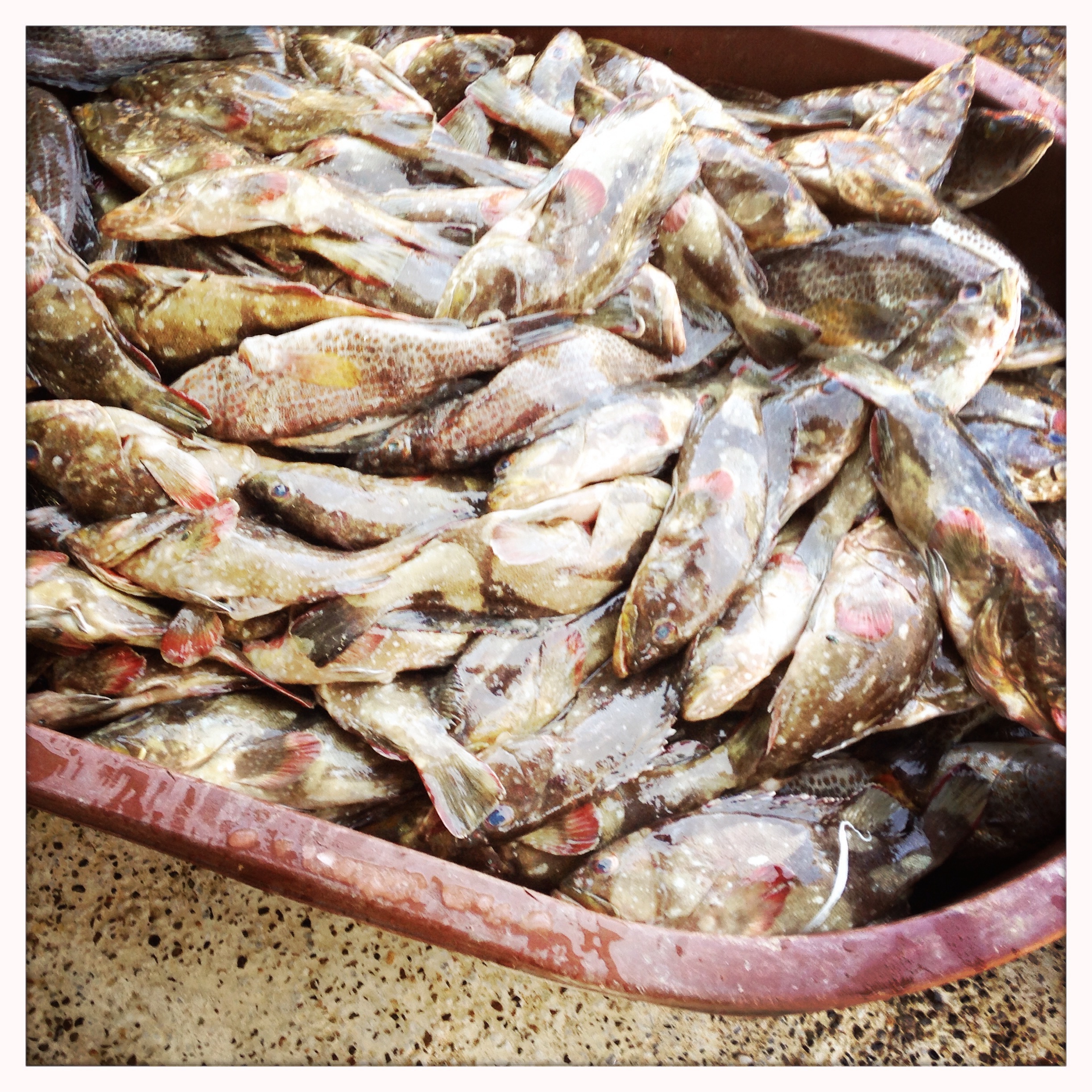We had thrown the idea around of making dinner one night for the house staff, and of inviting our boat captain Mario and his wife and new baby daughter. Don had suggested cooking a whole goat. (Don likes to suggest cooking whole animals.) Perhaps later in the week we would do this, maybe after the farmer’s market that I wanted to visit on Saturday. Tonight, I would cook, and I would cook seafood from the mercado de pescado — the fish market.