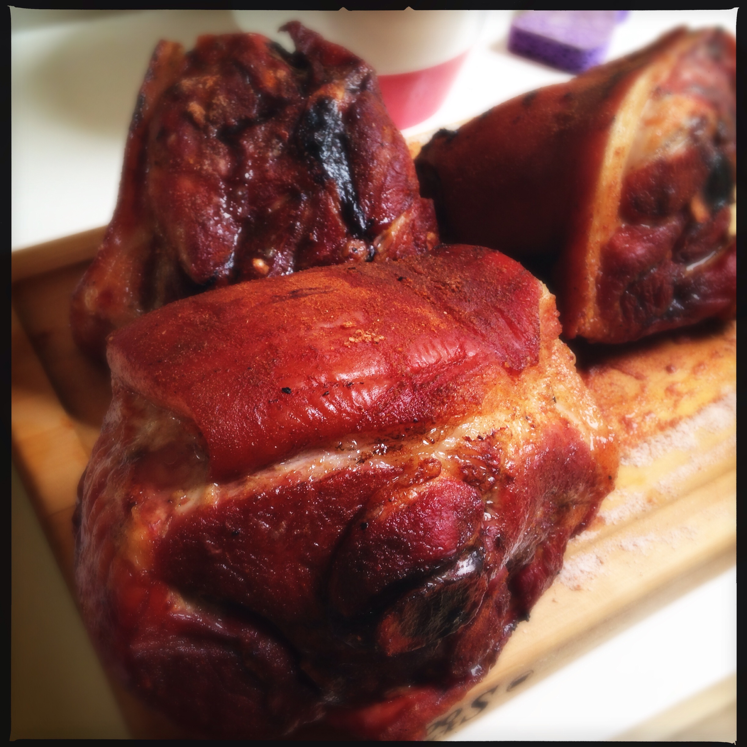 Right now, as I write this, there are four large Spanish-spiced pork shoulders on the grill slow smoking. (I will finish them in the wood-burning oven at the event, then shred them and put them on little bread rolls.) In the fridge are six tuna loins curing, which when thinly sliced will become an appetizer set atop little batons of those 50 lbs. of potatoes. (I was just kidding about the famine theme thing.)