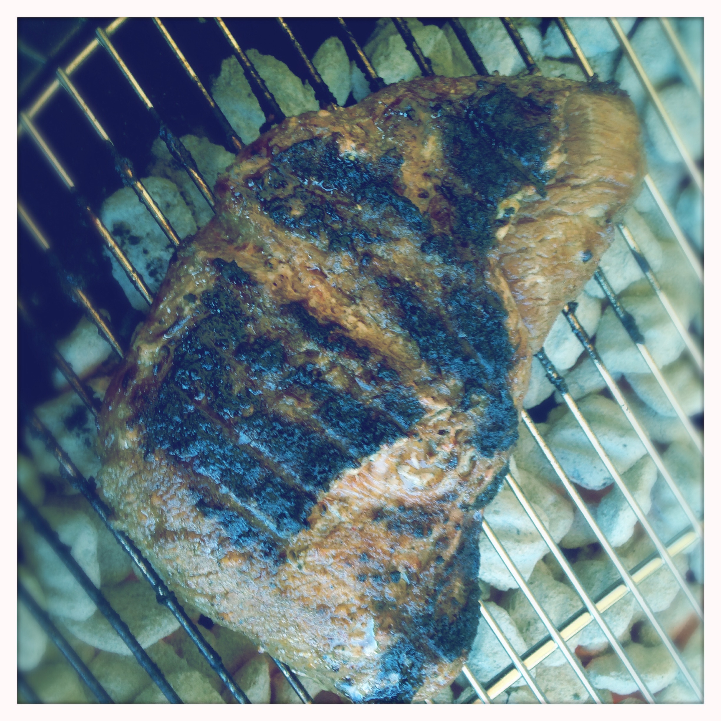 I set up on the sunlit back patio and began grilling at about 10:30, and like clockwork, the first guests arrived in their wine bus at 10:59, and set to immediately ogling my grill. It was time for a glass of wine.