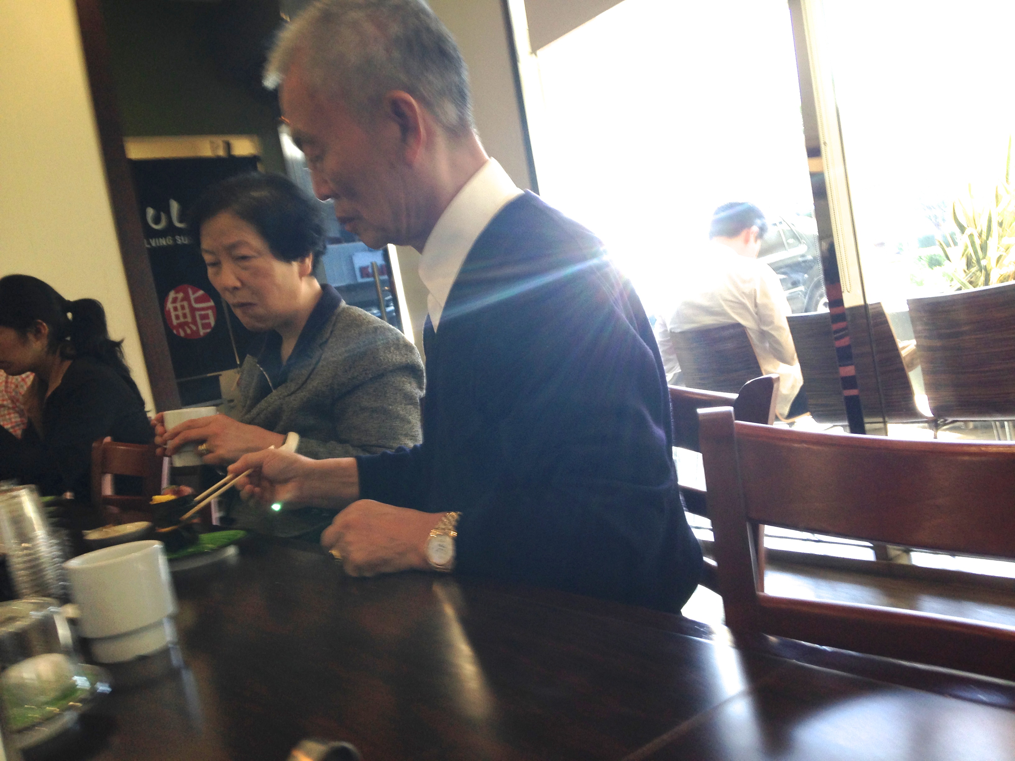 The other day, I’d just sat down and was enjoying my green tea, watching the plates pass slowly by, when an older Japanese couple came in and sat a couple seats to my right.