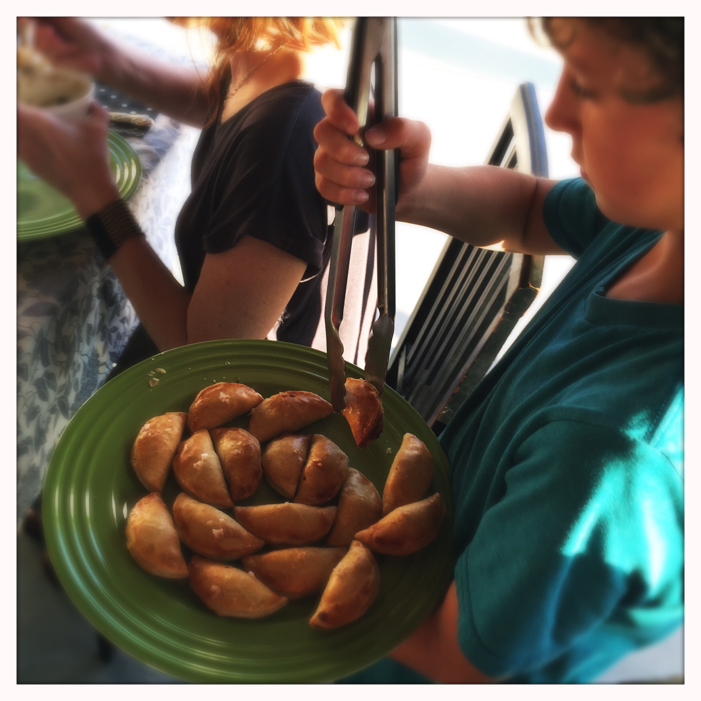 Sitting back in my chair, sated and happy with the last of my wine (we didn’t drink any vodka, it turned out), I saw Sam and Olga’s sheepdog eating piroshki pilfered from the plates of children. I hoped he was enjoying them, and recognizing the time that went into rolling and folding and rolling and folding to get that flaky crust.