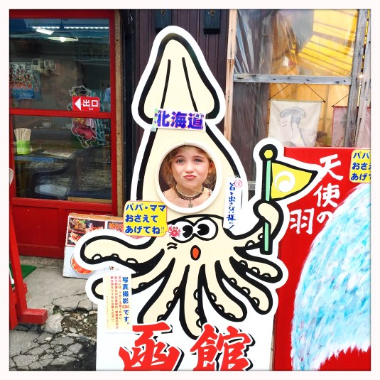 Squid, apparently, swim in massive shoals in the bay outside Hakodate. It’s hard to get a meal in Hakodate that does not include squid. At a squid ramen restaurant, I tried to find something my squid-squeamish kids would eat. The waitress didn’t speak English, my Japanese could kindly be described as “limited”, so I was pointing at pictures in the menu.