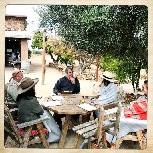 The valley was about 45 minutes from our house, we took the back route (the free road, versus the coastal toll road) which itself was breathtakingly beautiful, meandering past sleepy riverside villages, through dramatic canyons and up onto meadowy plateaus. Descending into the valley, it looked the illegitimate lovechild of Napa and Chihuahua — the routes up to large stately wineries lined with Oxxo markets and taco stands; orderly vineyards set amidst craggy desert boulders.