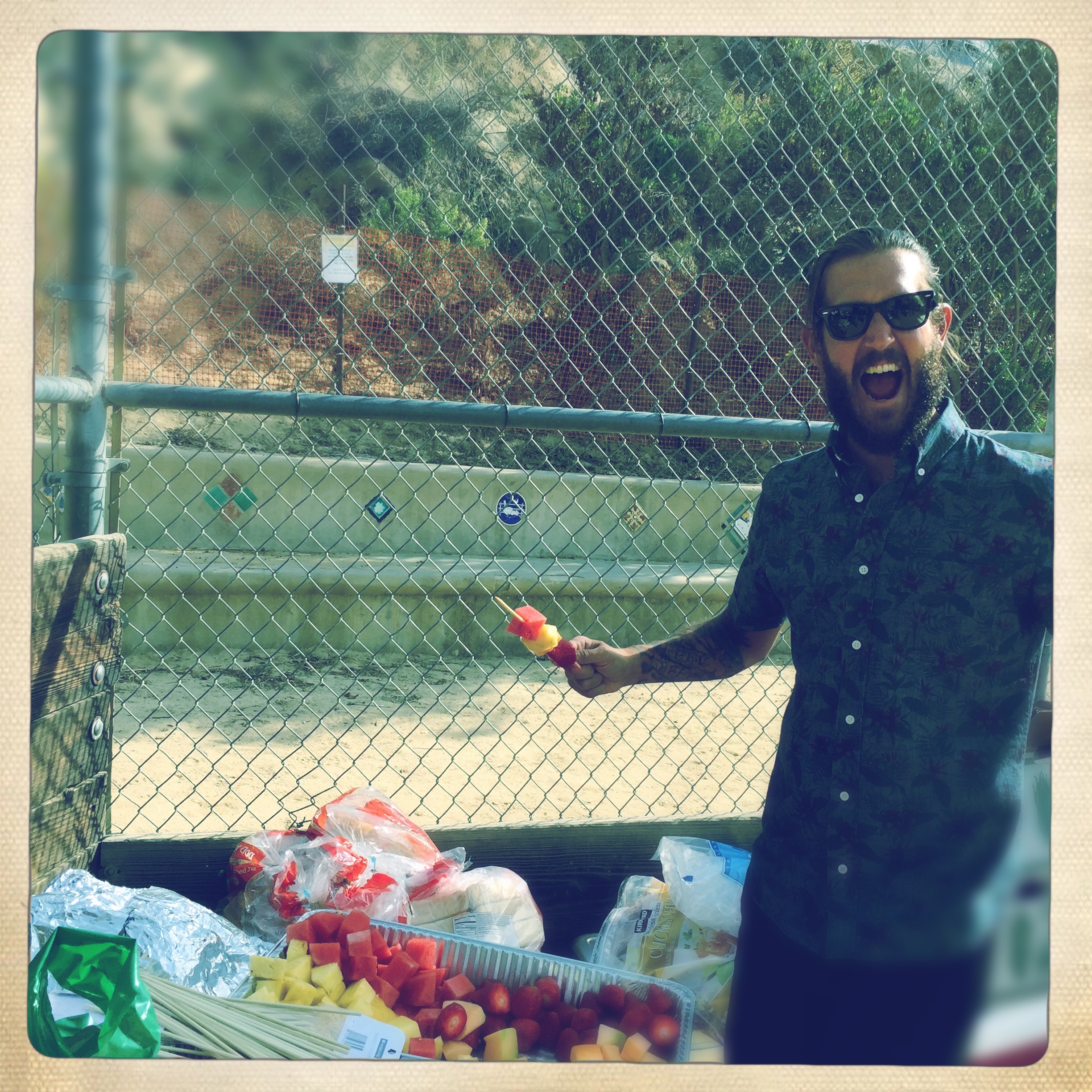 I got to the ballfield at the local community center around 1:30 for the 3:30 start time. I unloaded my coolers full of meat, boxes of bread and bags of slaw — far more food than was necessary, I was certain, and felt confident I would be bringing things home at the evening’s conclusion. But the event organizer, my friend Danielle, had asked me to err on the side of abundance. To cook on, there was a large and rusty Santa Maria grill that had rolled in on wheels and parked itself beneath the backstop. More