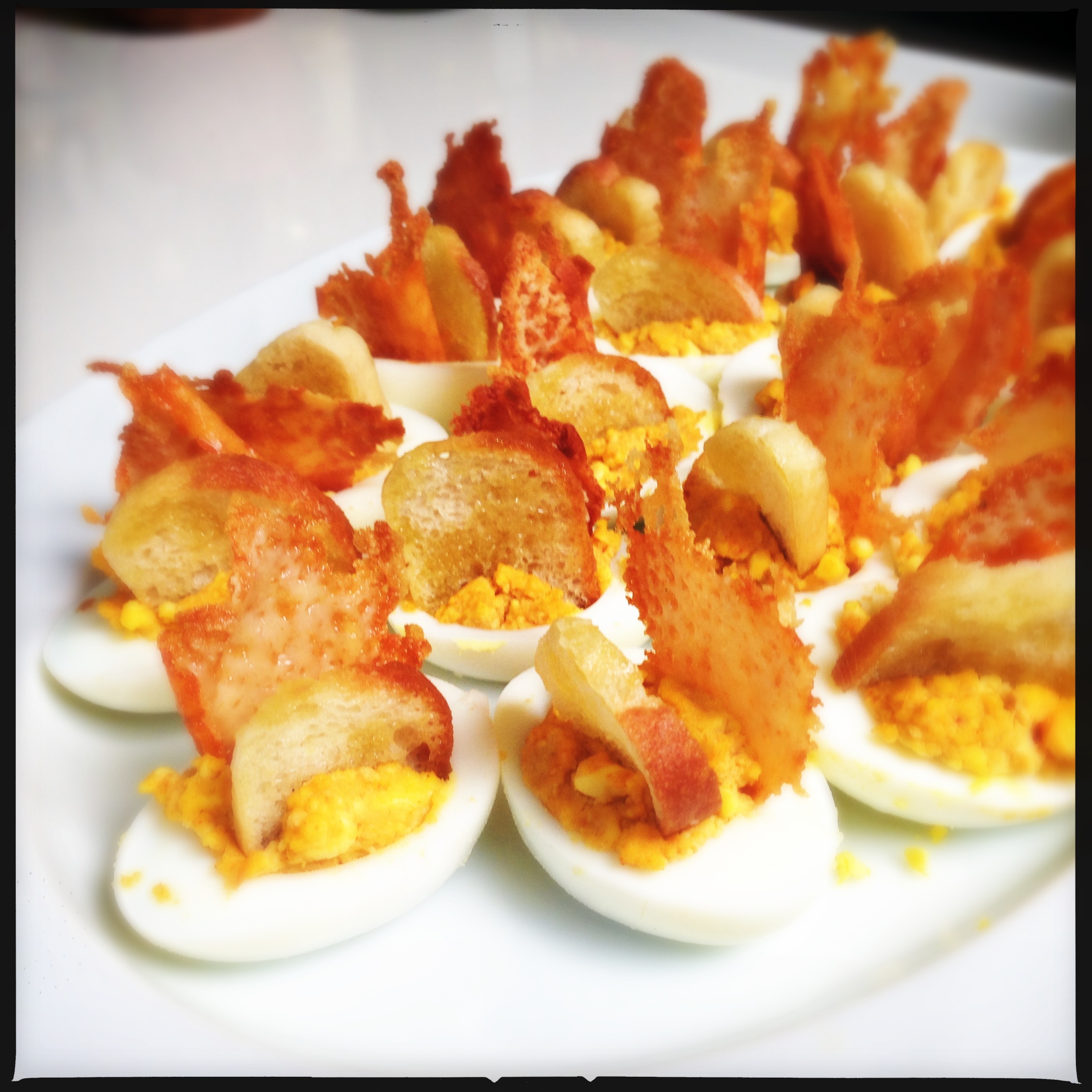 They’re one of the all-time cliché potluck contributions — deviled eggs. But the convergence of a party invitation from our neighbors Chris & Glennis’ with a surplus of eggs from our 20-some-odd chickens proved to be more of a temptation than I could resist. You could say the devil possessed me.